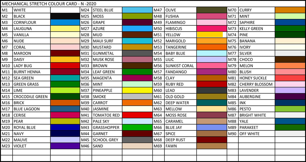 Colour card colours can vary slightly to images shown