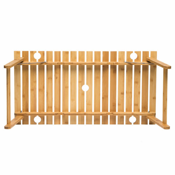Foldable/Packable - 18 slat alfresco Bamboo table with four integrated wine glass holders and a centre umbrella hole
