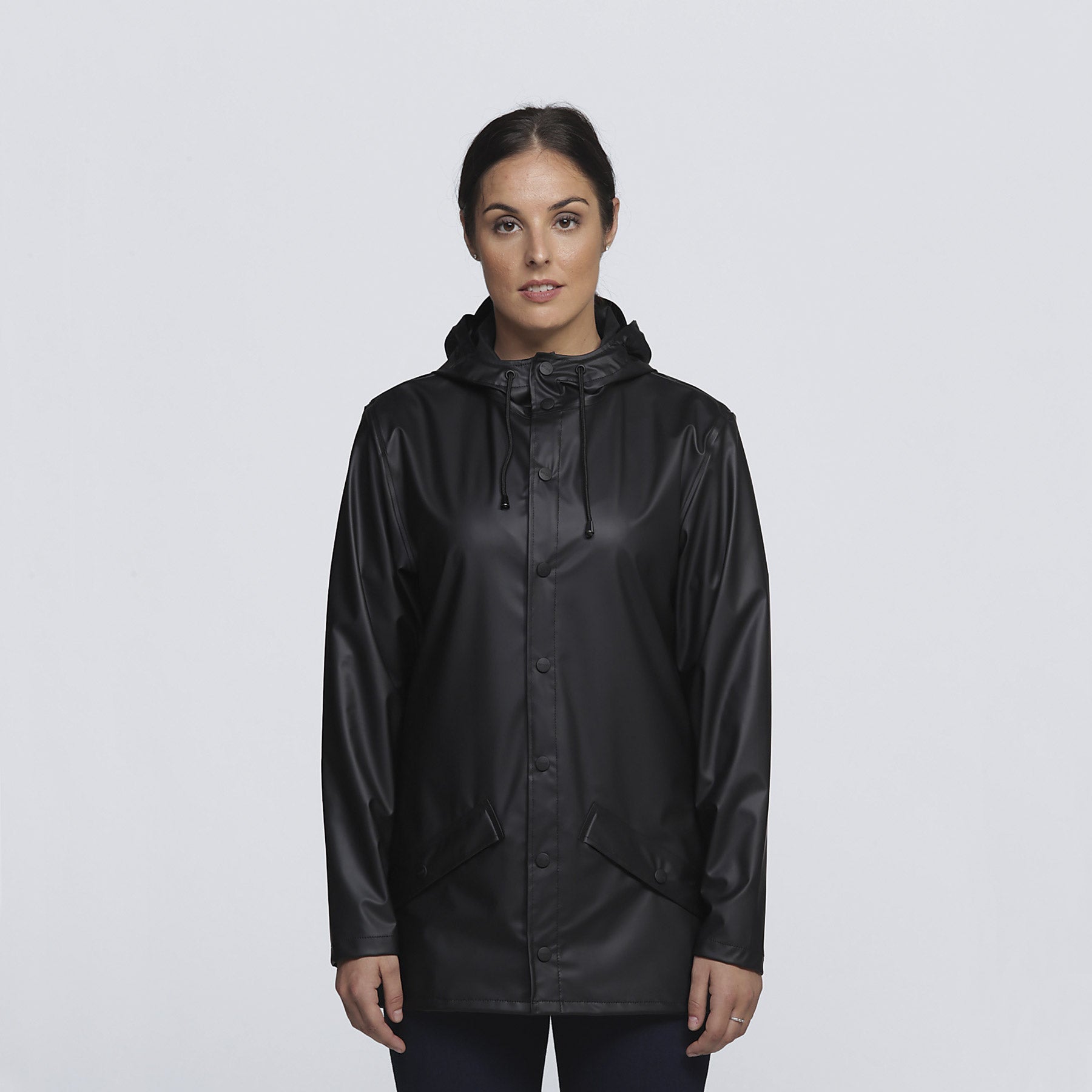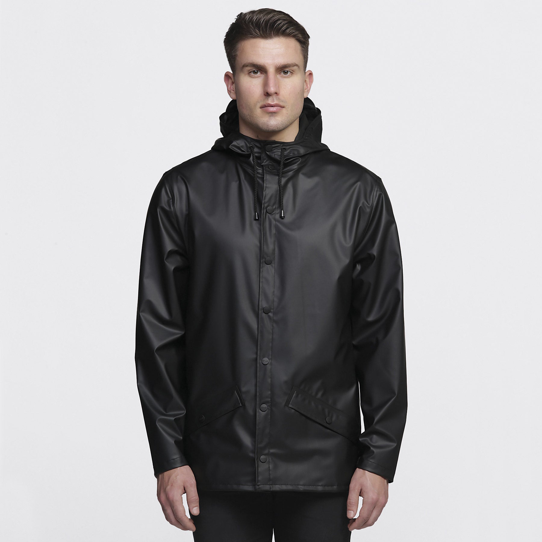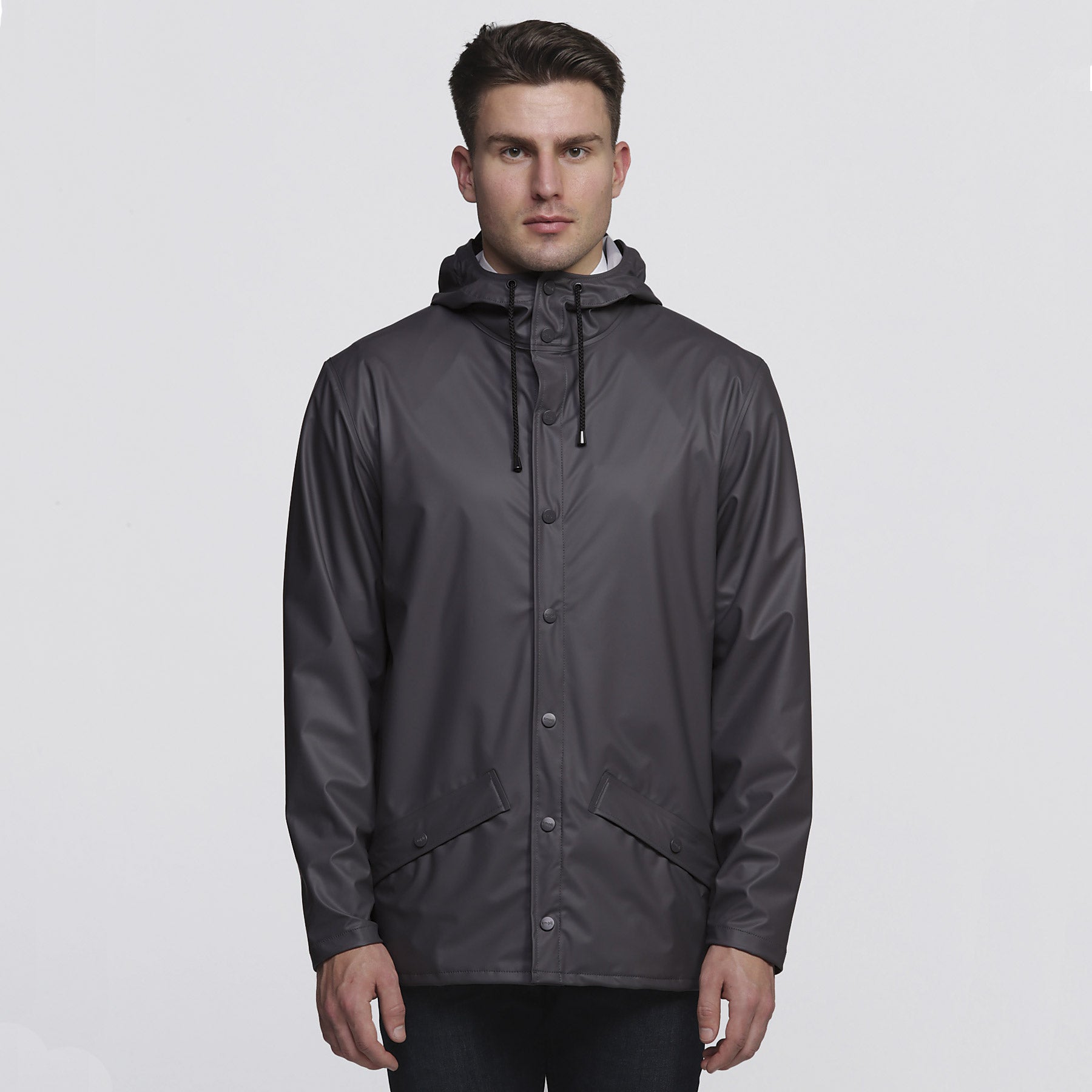 Double welded slanting pocket flaps with smpli embossed snap buttons