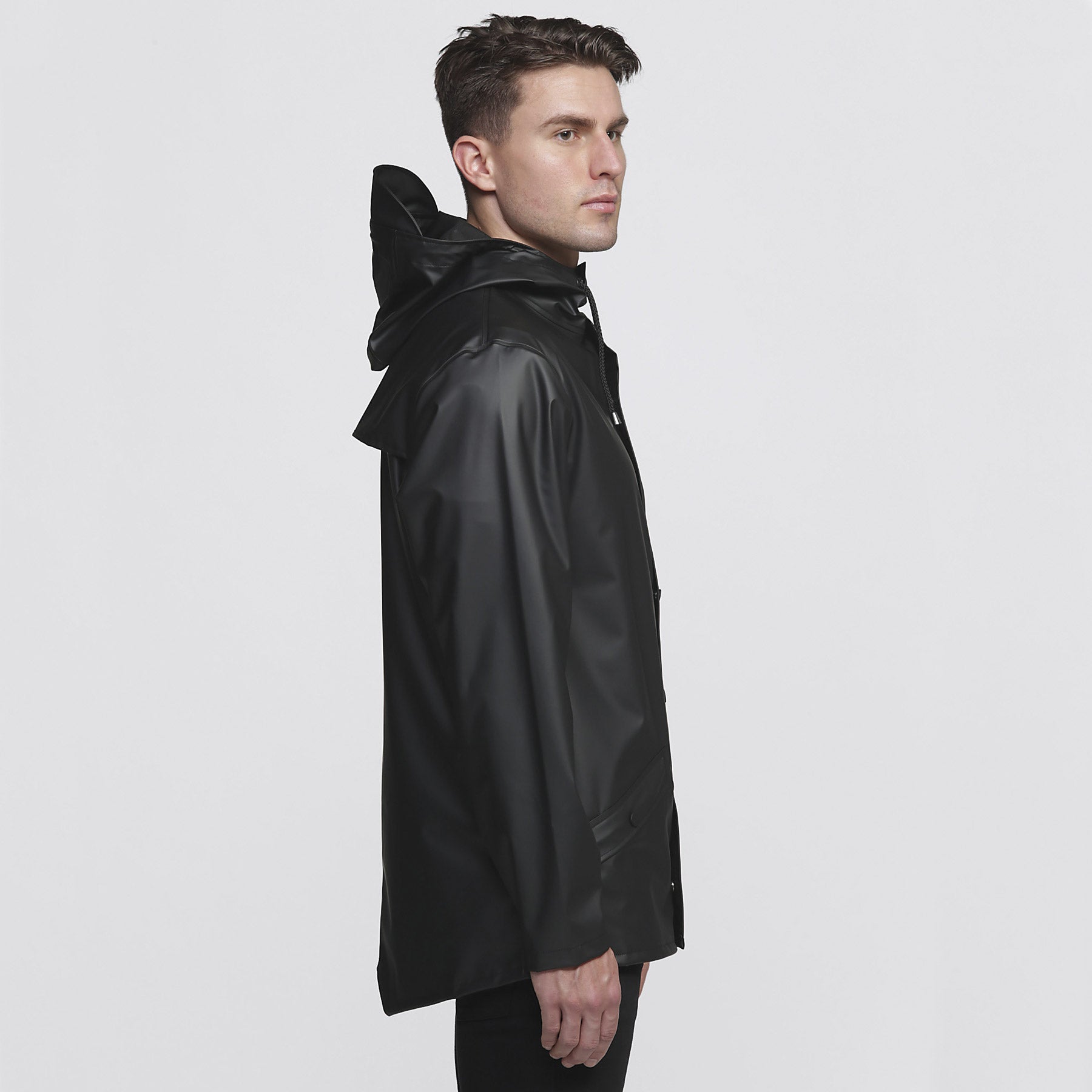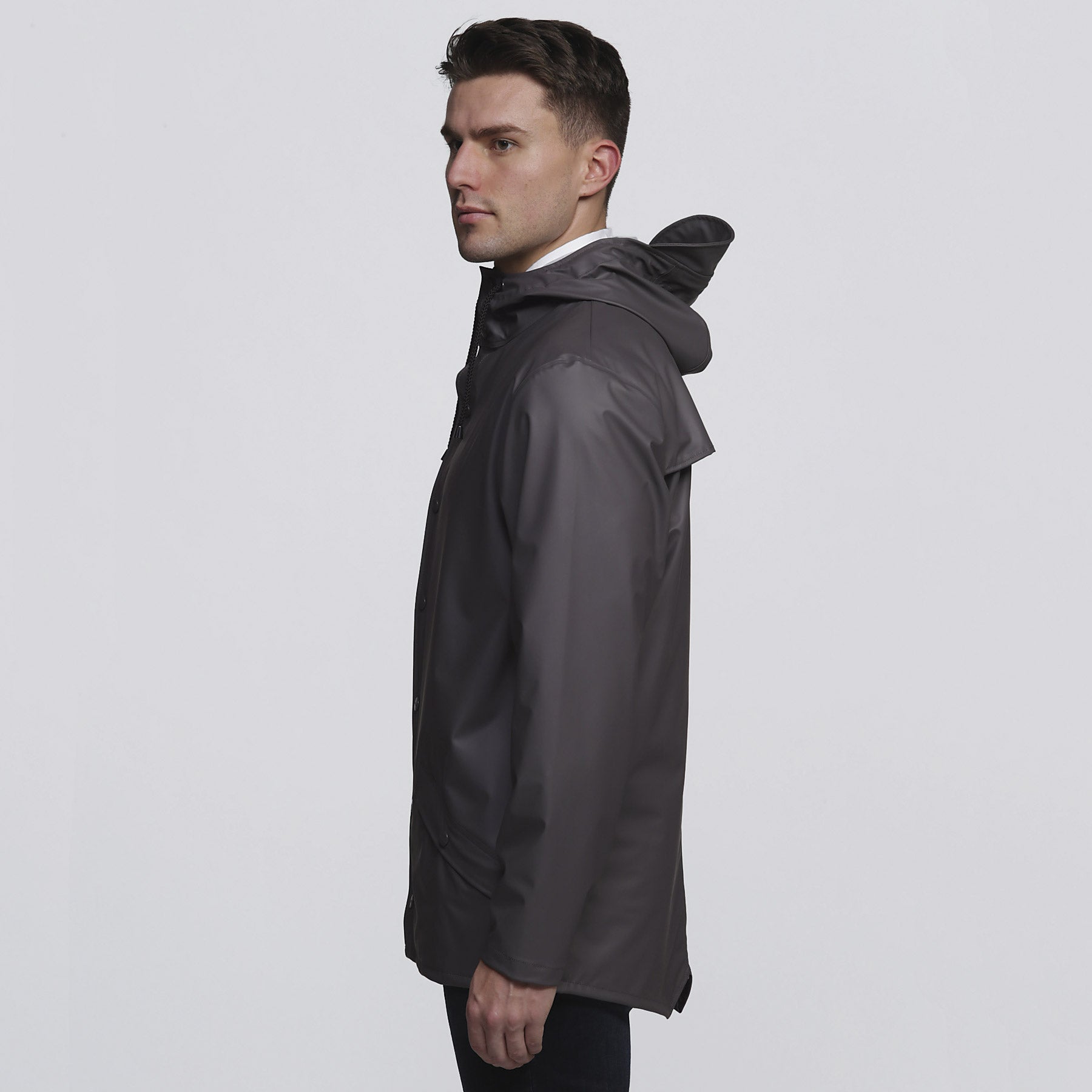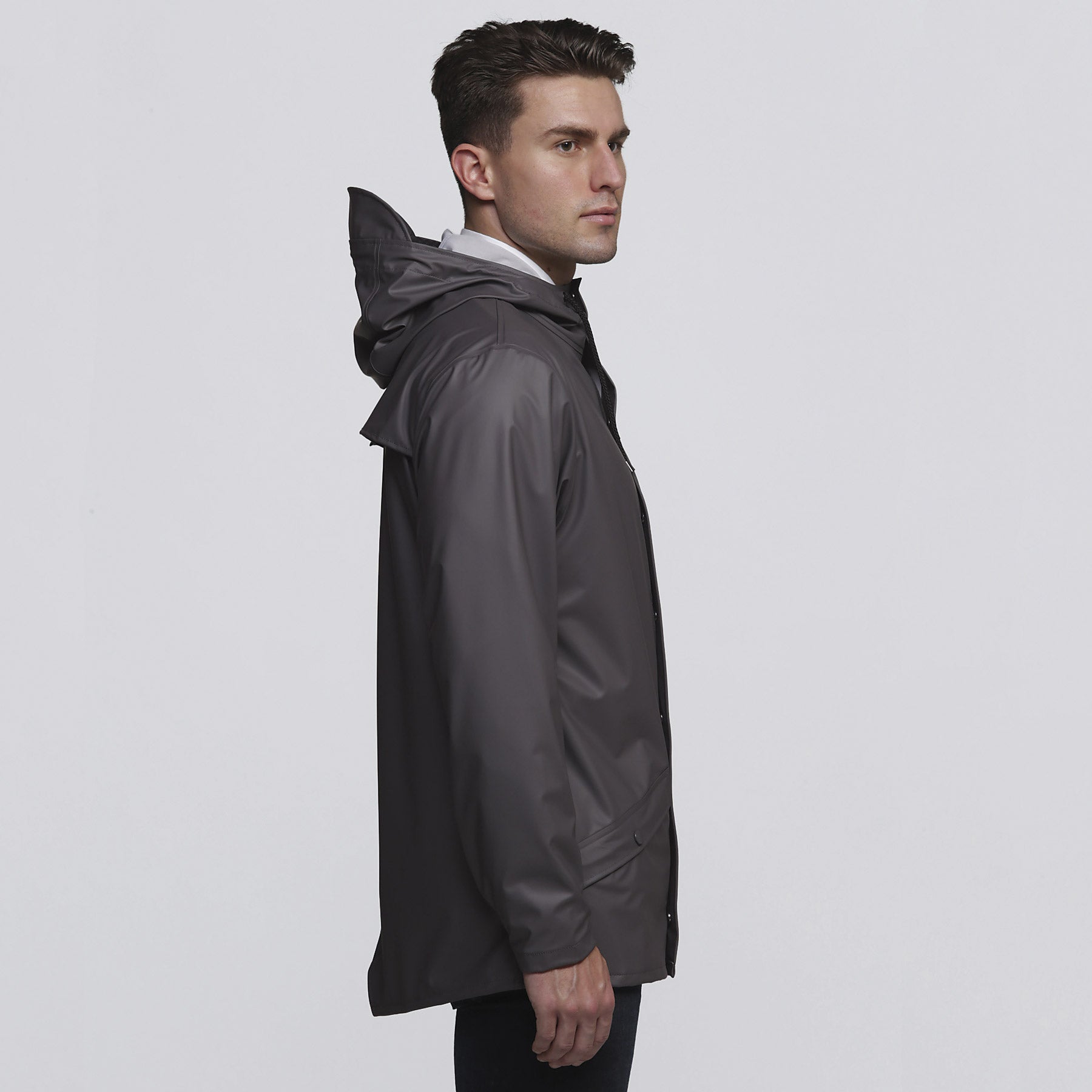 Double welded slanting pocket flaps with smpli embossed snap buttons